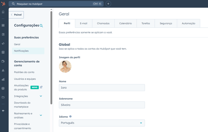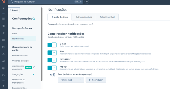 Habilitar notificações no e-mail