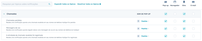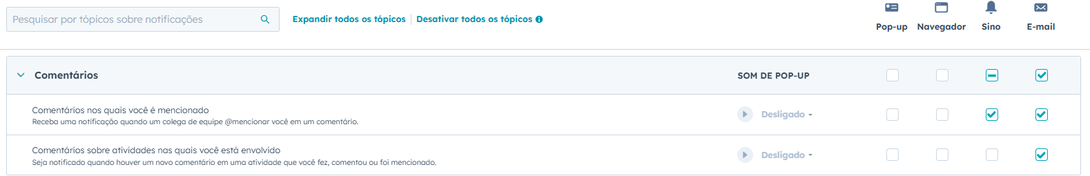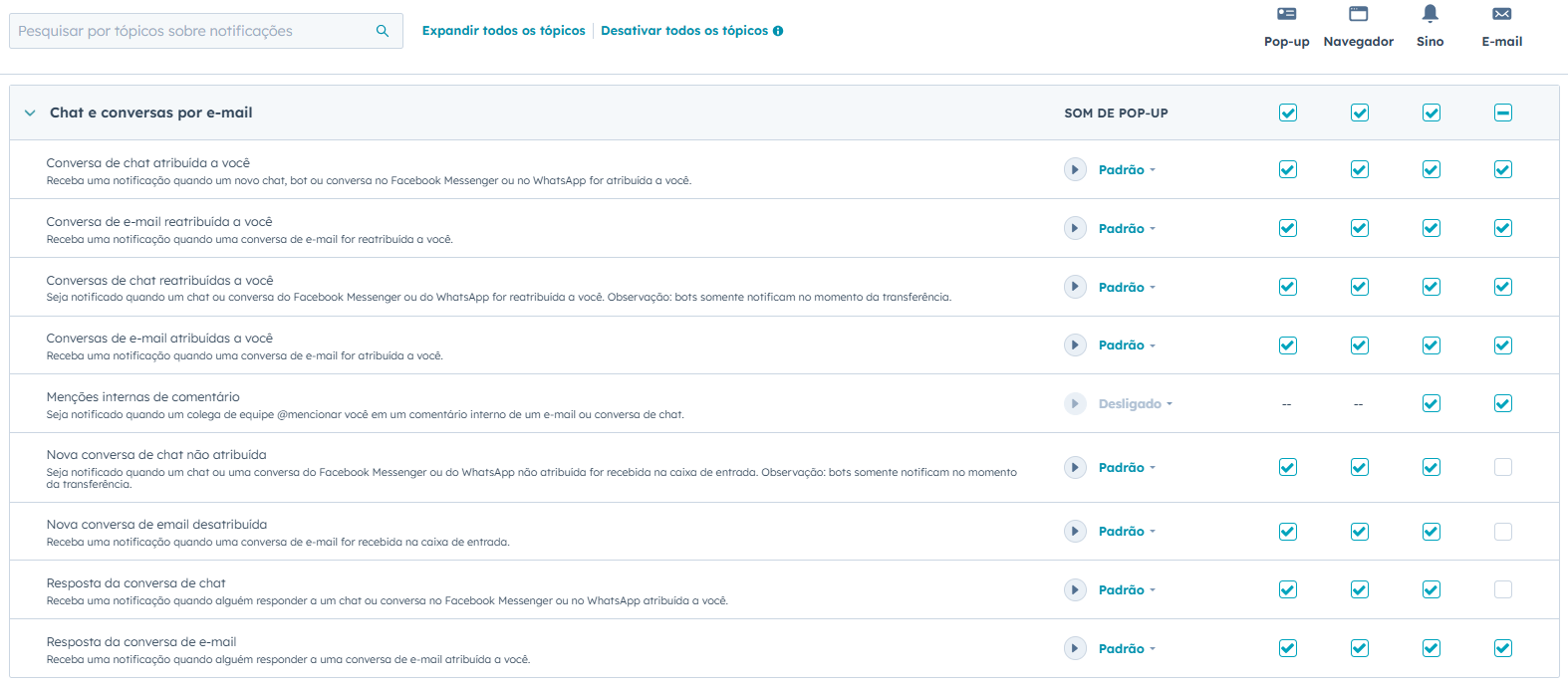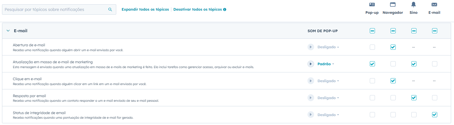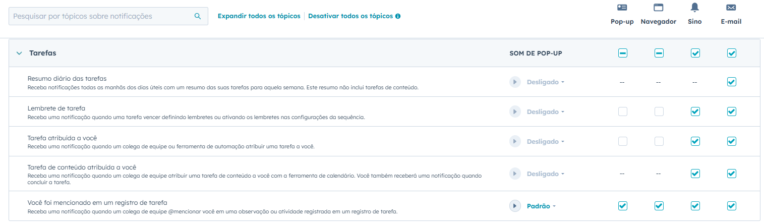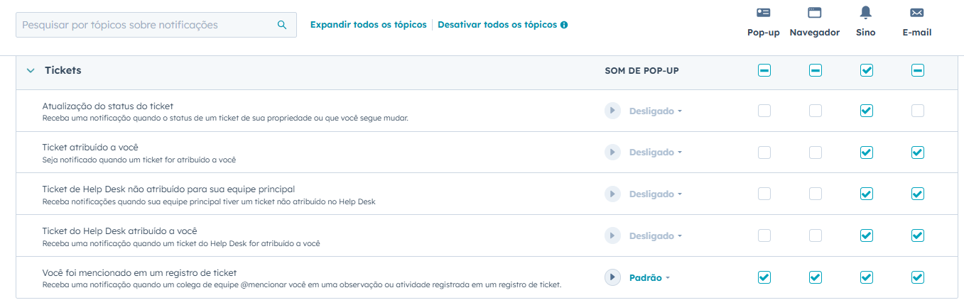 Em Sobre o que ser notificado, verifique se está selecionado todas as opções nos seguintes tópicos: