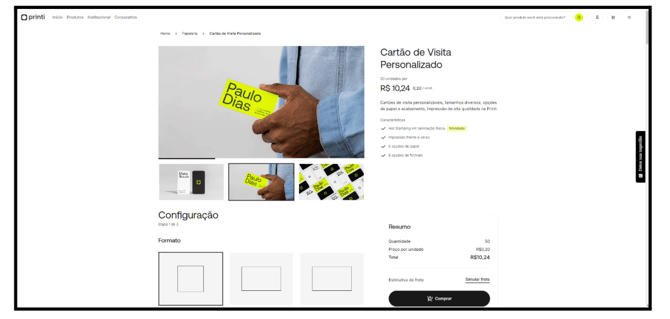 A jornada de compra no site da Printi foi projetada para ser intuitiva e fácil, com foco na experiência do usuário.